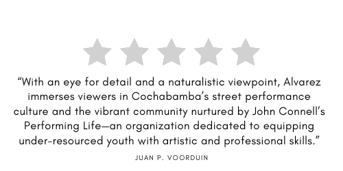 With an eye for detail and a naturalistic viewpoint, Alvarez immerses viewers in Cochabamba’s street performance culture and the vibrant community nurtured by John Connell’s Performing Life—an organization dedicated to equipping under-resourced youth with artistic and professional skills.
