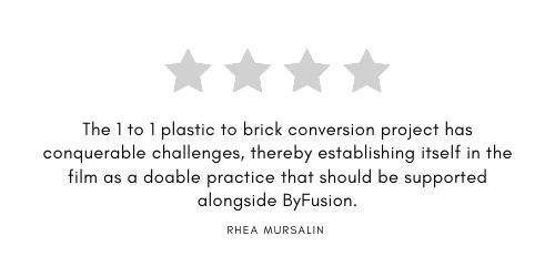 The 1 to 1 plastic to brick conversion project has conquerable challenges, thereby establishing itself in the film as a doable practice that should be supported alongside ByFusion.