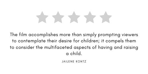 Chriest masterfully weaves together all the elements of the message in a concise and comprehensible manner. The visuals evoke a range of emotions, each delivered at a manageable pace. The film accomplishes more than simply prompting viewers to contemplate their desire for children; it compels them to consider the multifaceted aspects of having and raising a child.
